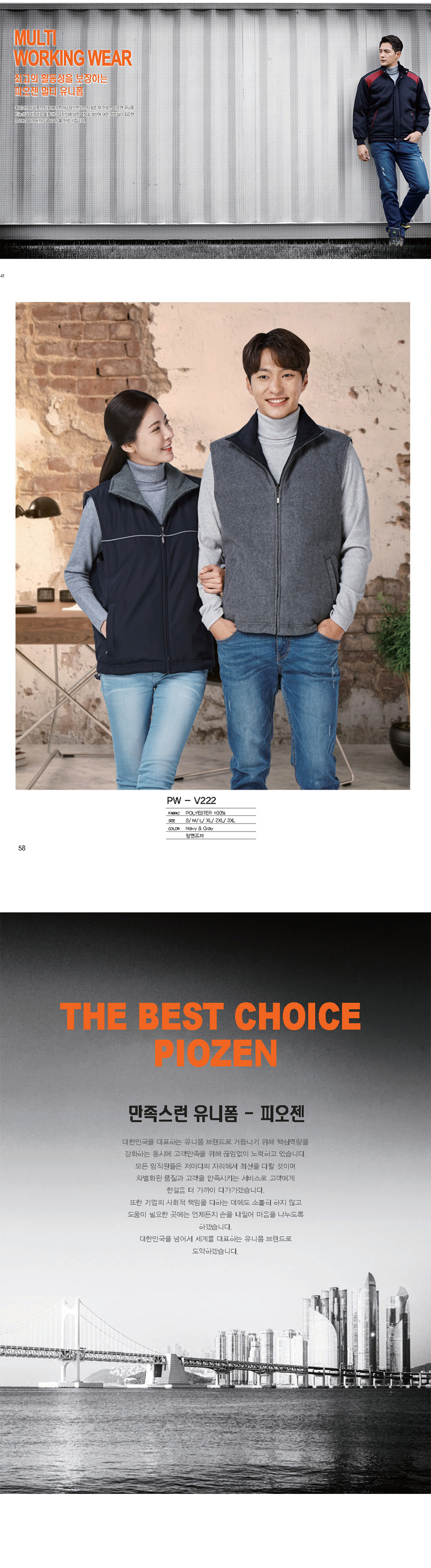 피오젠 단체 근무복/작업복/사무복 조끼 / PW V222