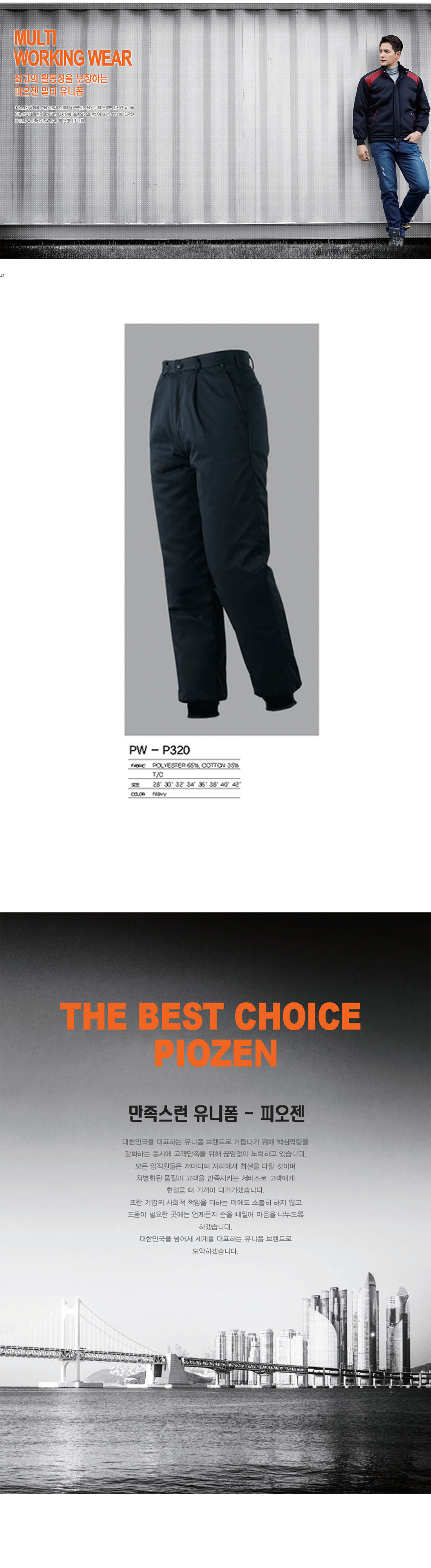 피오젠 단체 근무복/작업복/사무복 / PW P320