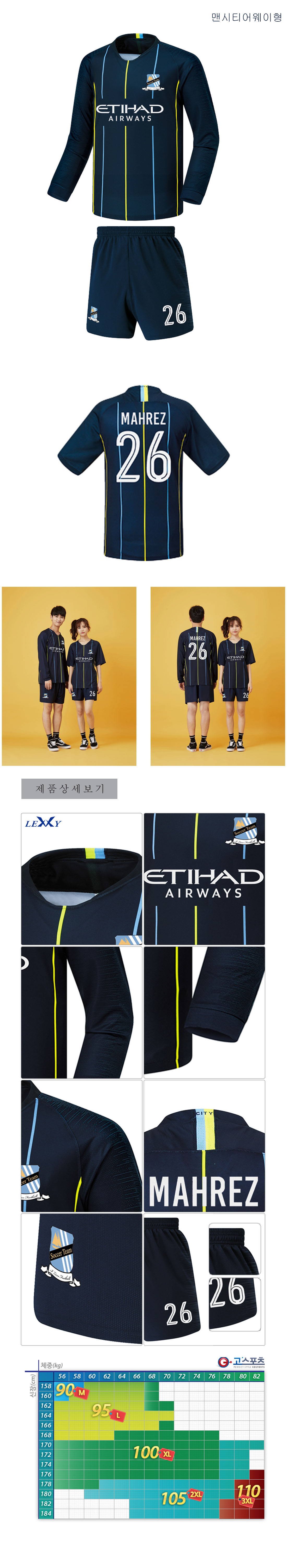 맨체스터 시티 어웨이형(맨시티 어웨이형)/단체 축구유니폼/단체복/단체 반티/축구복/프리미어리그 축구유니폼