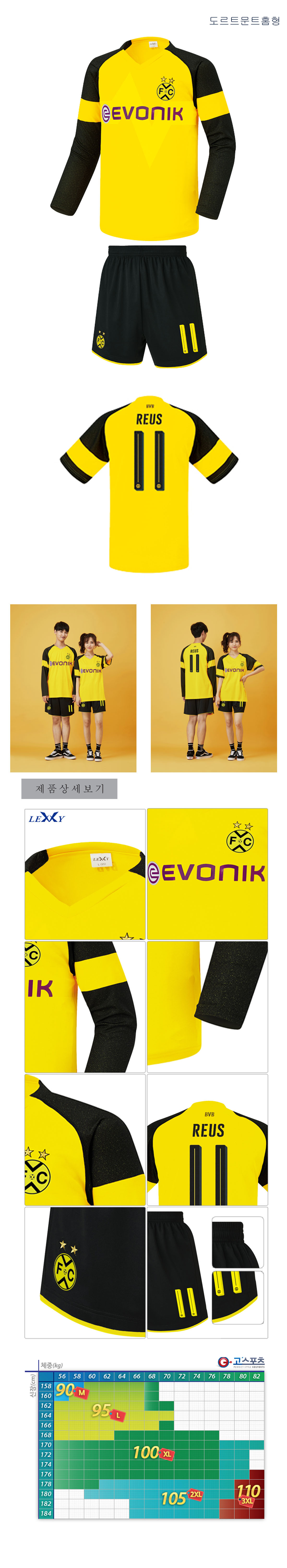 도르트문트 홈형/단체 축구유니폼/단체복/단체 반티/축구복/분데스리가 리그 축구유니폼