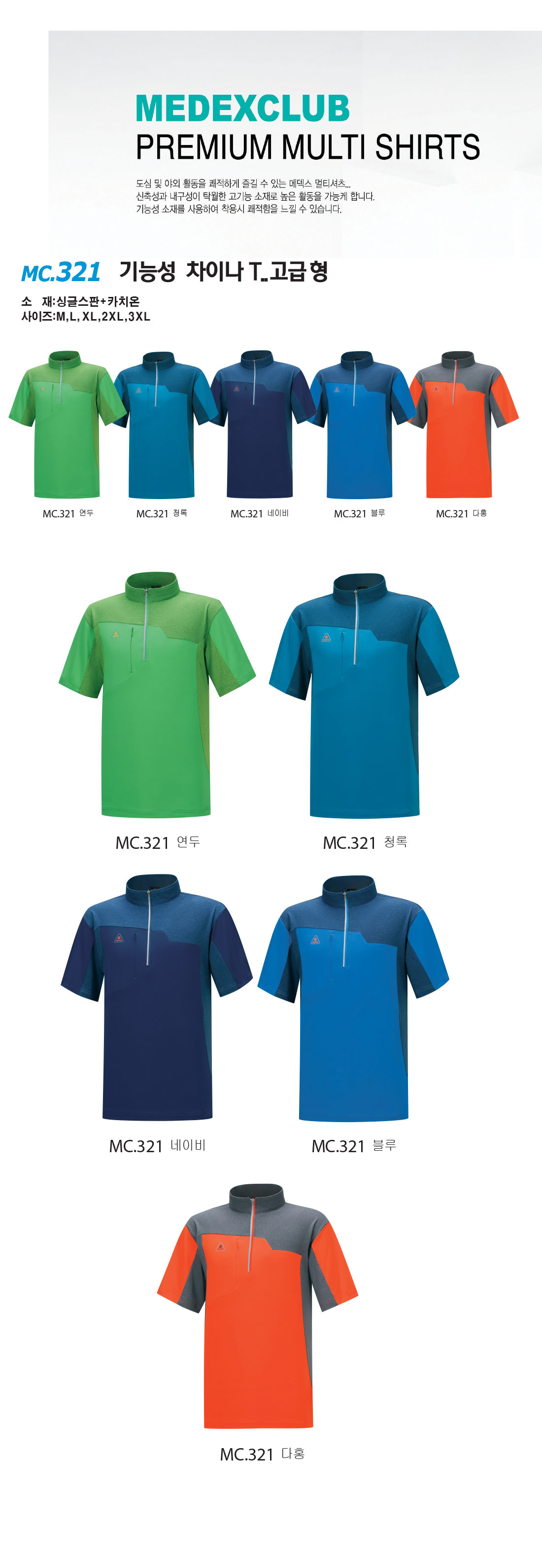 메덱스 기능성 스판 차이나티/단체 차이나티/단체 티셔츠/단체 반팔티/등산티셔츠/MC 321