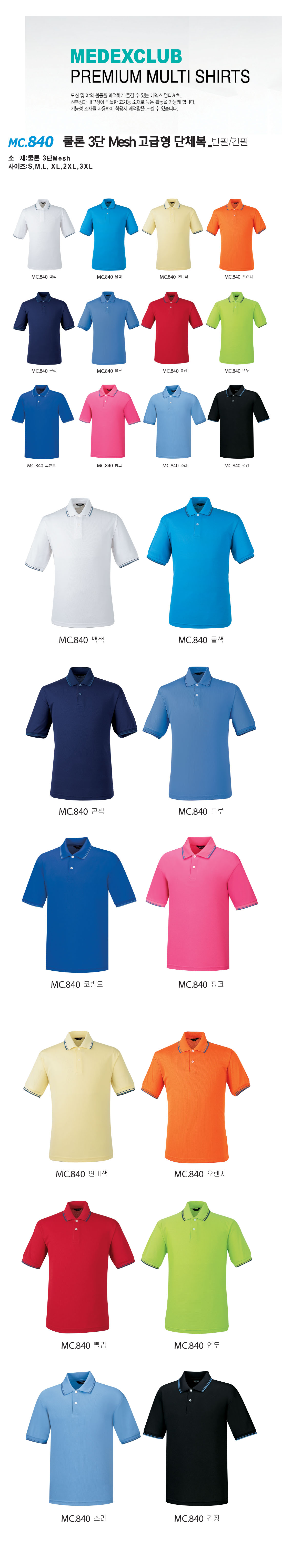 메덱스 쿨론 3단 메쉬 고급형 단체복(반팔,긴팔)/단체 카라티/단체 티셔츠/단체 폴로티/MC 840