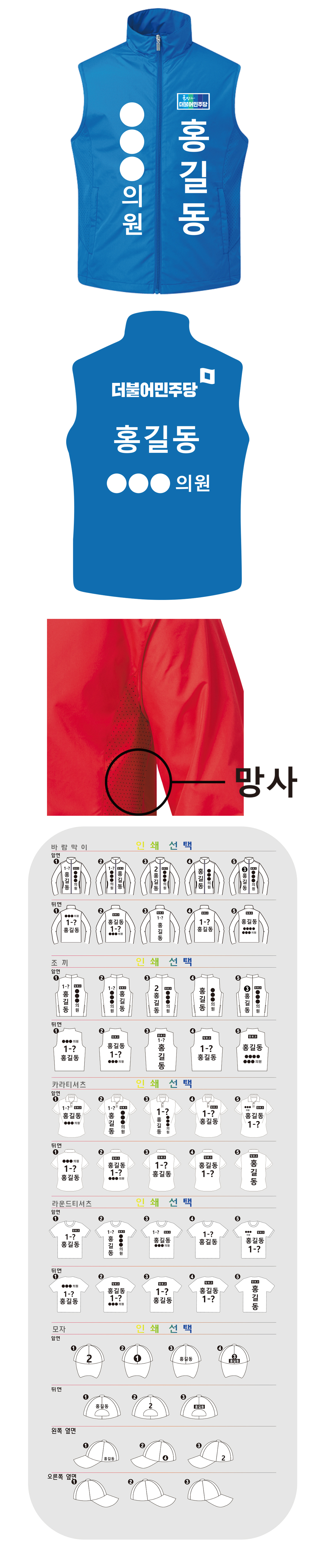 더불어민주당 선거복/더불어민주당 조끼/더불어민주당 단체조끼 /선거유니폼/조끼