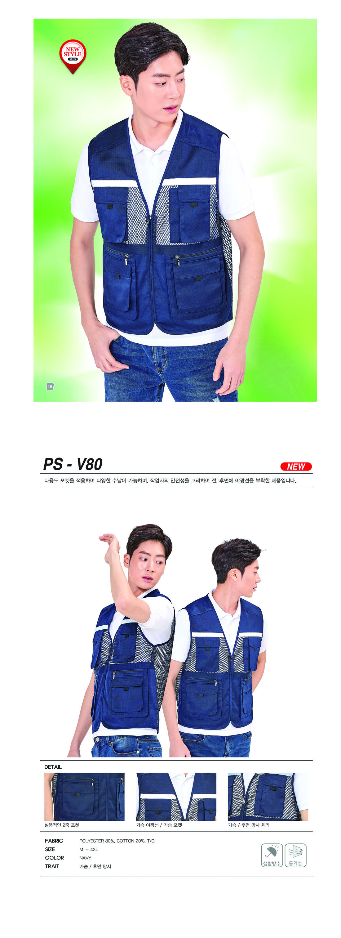 단체조끼/회사조끼/근무복조끼/망사조끼/ PS-V80