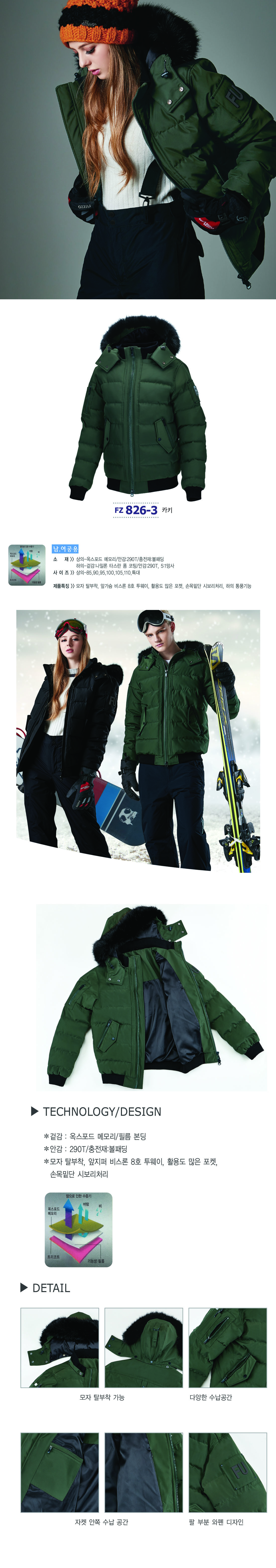 푸조 보드 스키 겨울패딩 [남녀 공용] / FZ826-3 / 카키