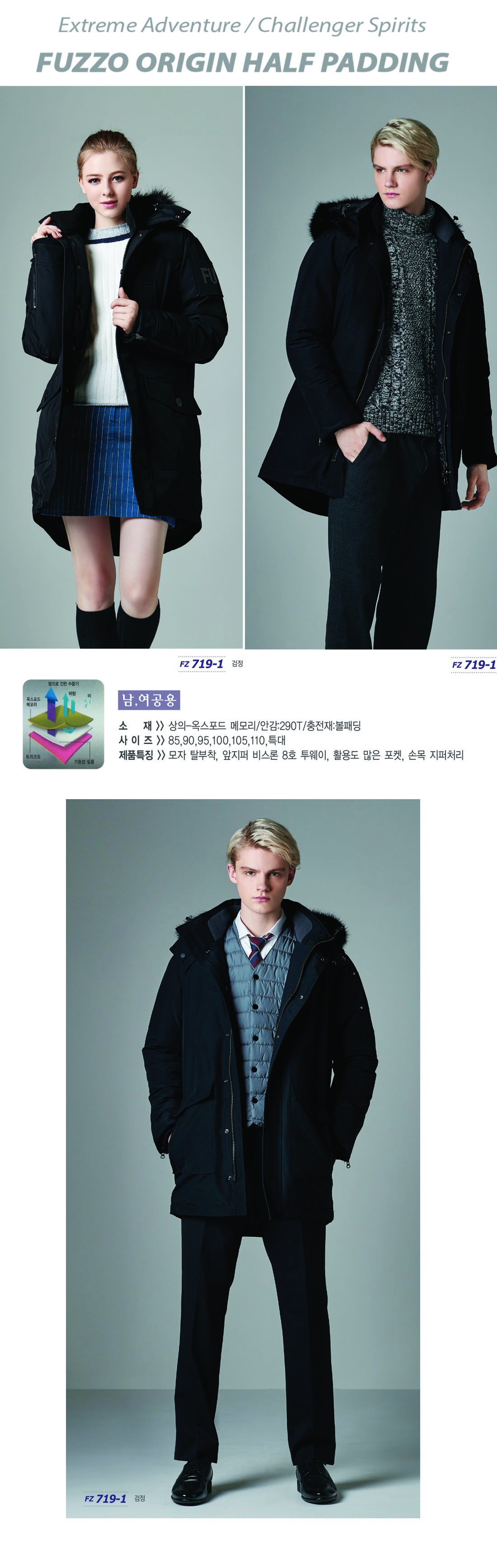 푸조 오리지날 롱 패딩 [남녀 공용] / FZ719-1 / 블랙