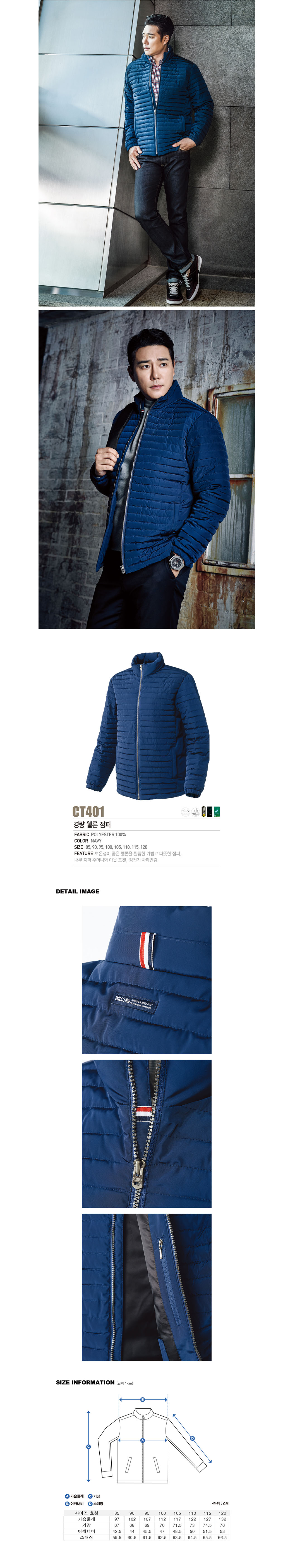 윌비 경량 웰론 작업,근무 점퍼 [단체작업복,단체근무복,겨울단체근무복] / CT401 / 네이비