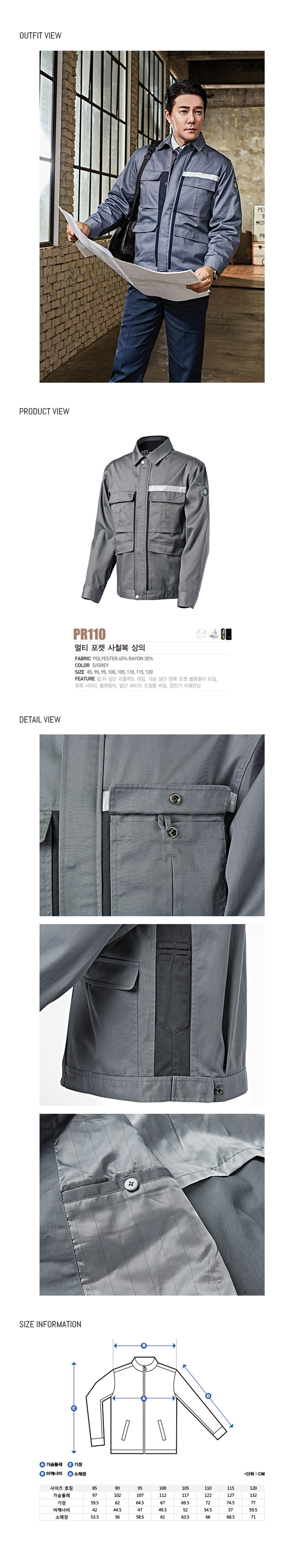 윌비 멀티 포켓 사철복 상의 [단체작업복,단체근무복,겨울단체복] / PR110 / 디크그레이