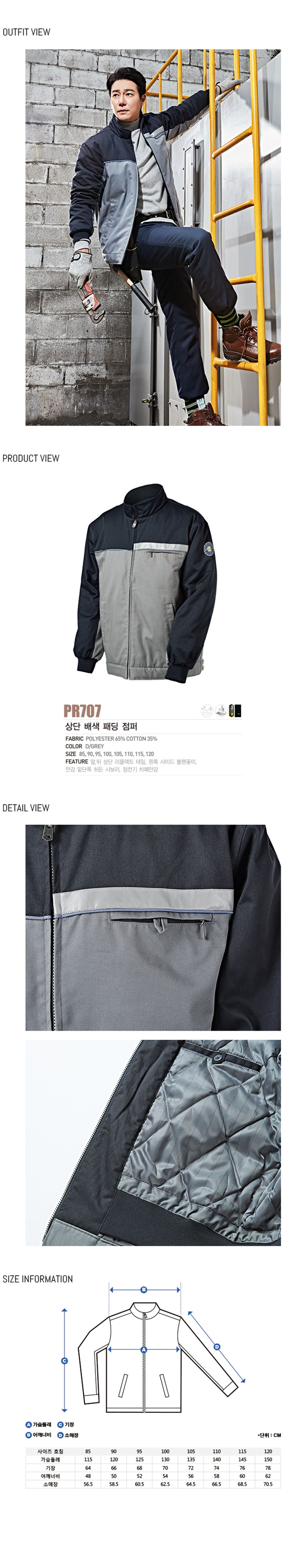 윌비 상단 배색 작업,근무 패딩점퍼 [단체작업복,단체근무복,겨울단체복] / PR707 / 다크그레이