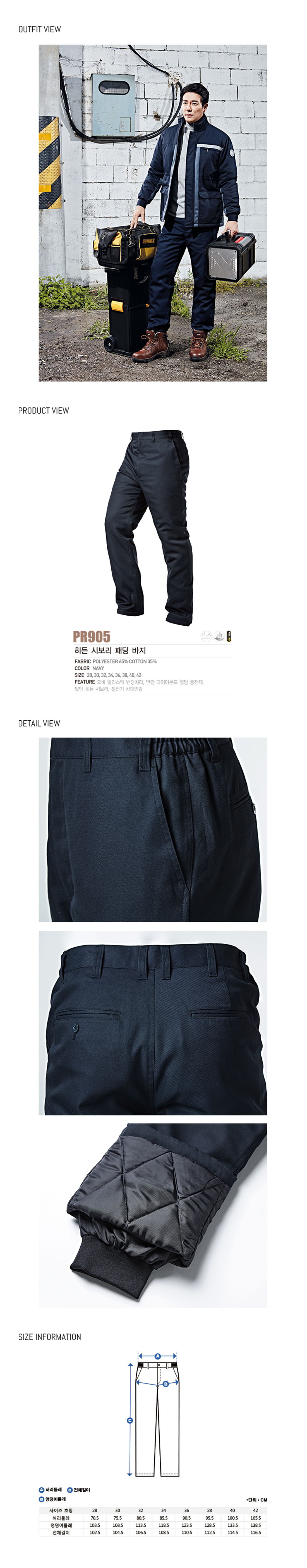 윌비 히든 시보리 작업,근무 패딩바지 [단체근무바지,단체작업바지,겨울단체근무바지] / PR905 / 네이비