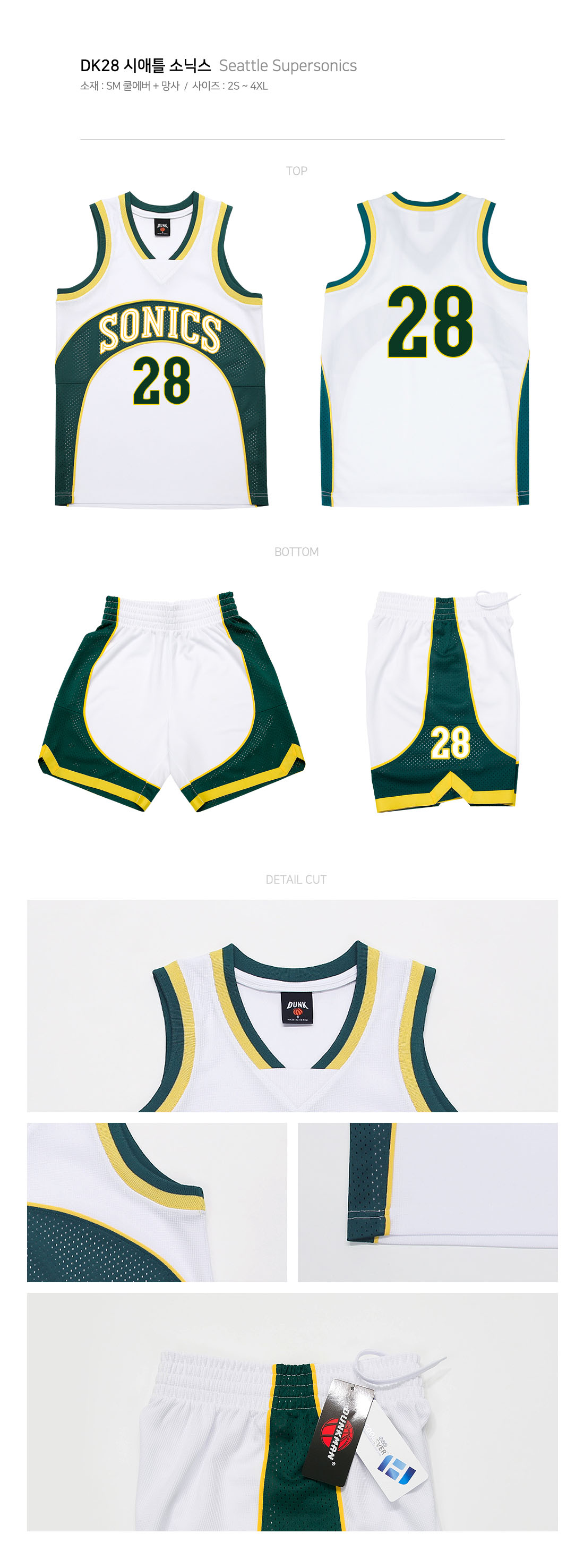 덩크맨 시애틀 소닉스 [상,하의세트][농구유니폼/단체농구복/단체반티] [국내생산] / DK 28