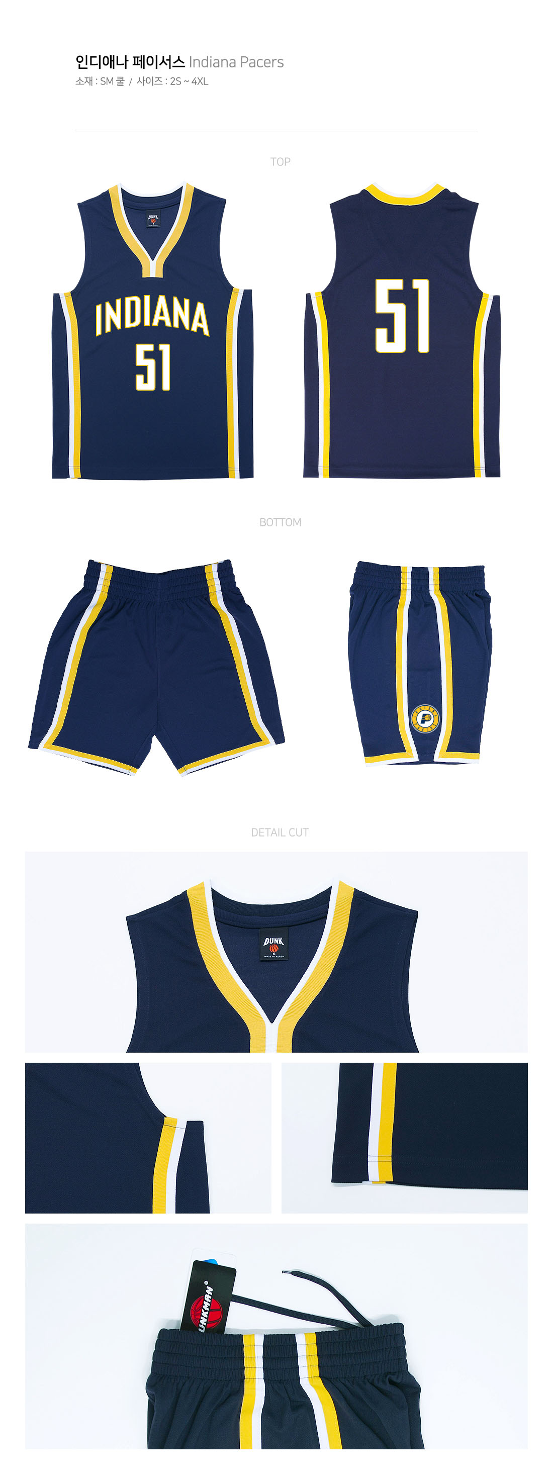 덩크맨 인디애나 페이서스 [상,하의세트][농구유니폼/단체농구복/단체반티] [국내생산] / NB-51