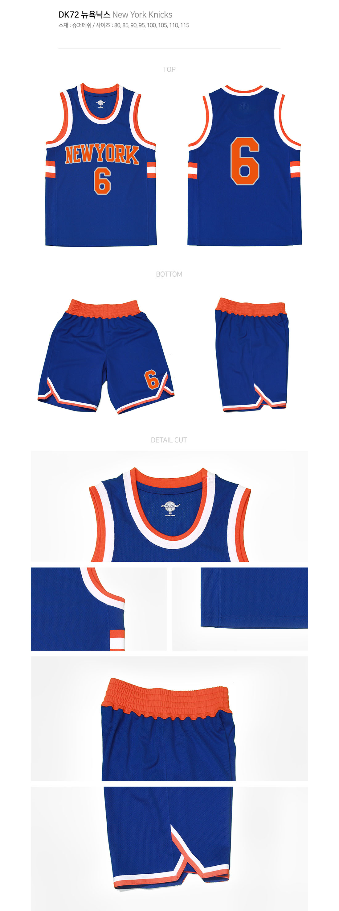 덩크맨 뉴욕닉스 [상,하의세트][농구유니폼/단체농구복/단체반티] [국내생산] / DK 72