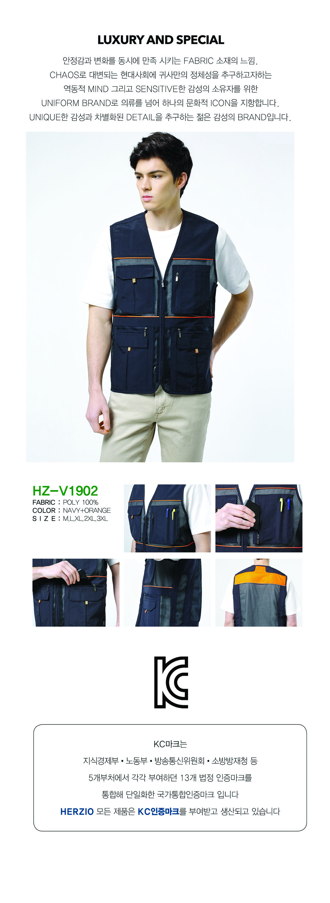 헤르지오 단체 하계 근무조끼 [단체근무복,근무조끼,하계근무복] / HZ-V1902 / 네이비,오렌지