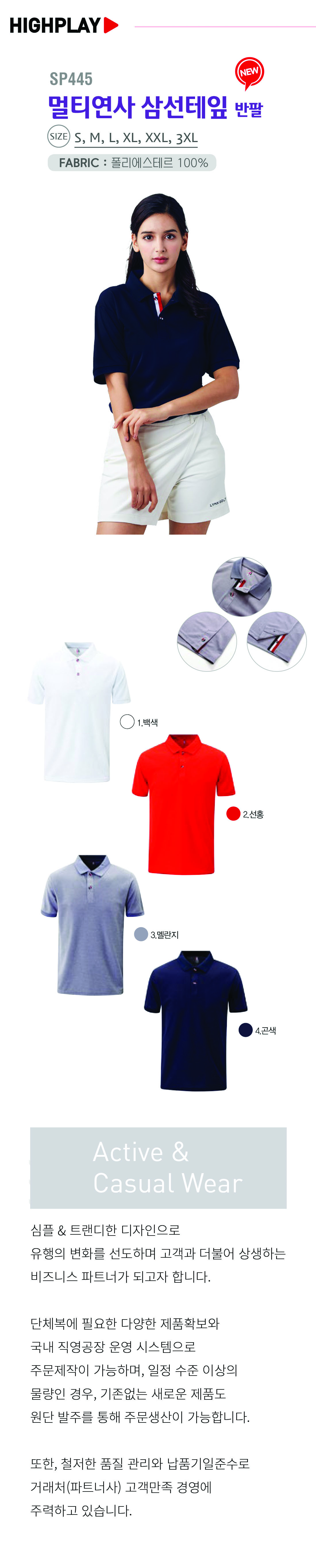 하이플레이 기능성 멀티연사 삼선테잎 카라티셔츠 [단체티셔츠,기능성카라티셔츠] / SP 445 / 반팔