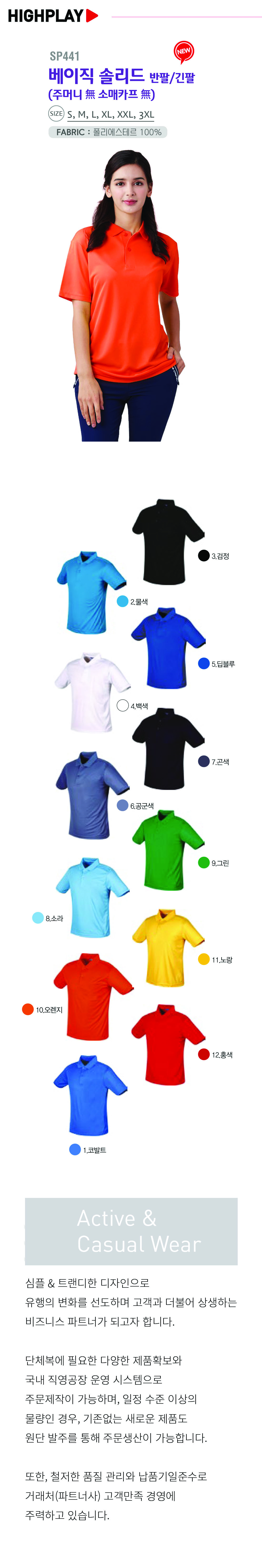 하이플레이 기능성 베이직 솔리드 카라티셔츠 [반팔,긴팔][단체티셔츠,기능성카라티셔츠] / SP 441 / 반팔