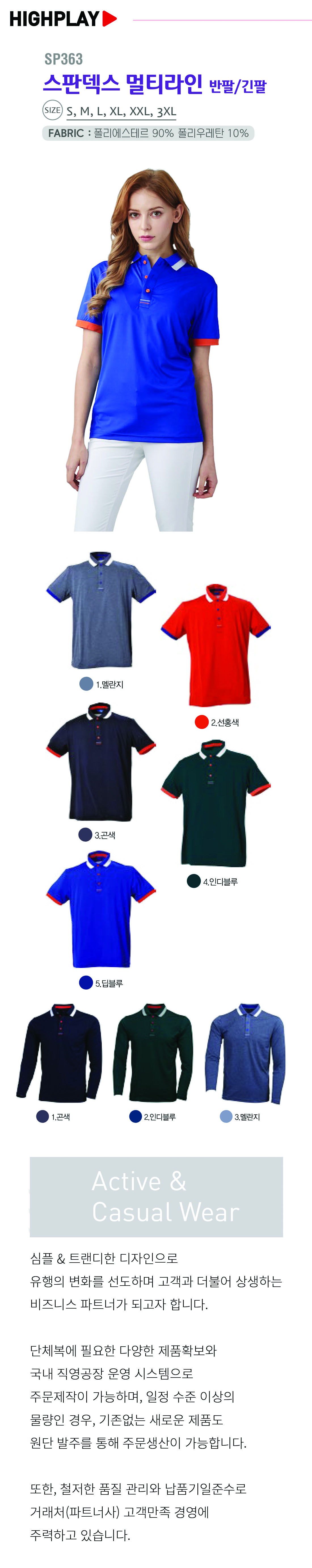 하이플레이 기능성 스판덱스 멀티라인 카라티셔츠 [단체티셔츠,기능성카라티셔츠] / SP 363 / 반팔,긴팔