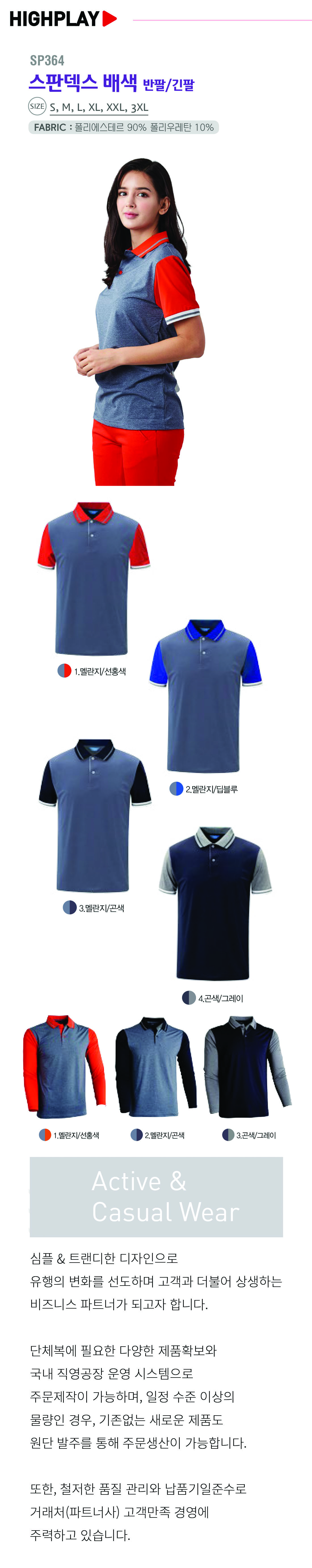 하이플레이 기능성 스판덱스 배색 카라티셔츠 [단체티셔츠,기능성카라티셔츠] / SP 364 / 반팔,긴팔