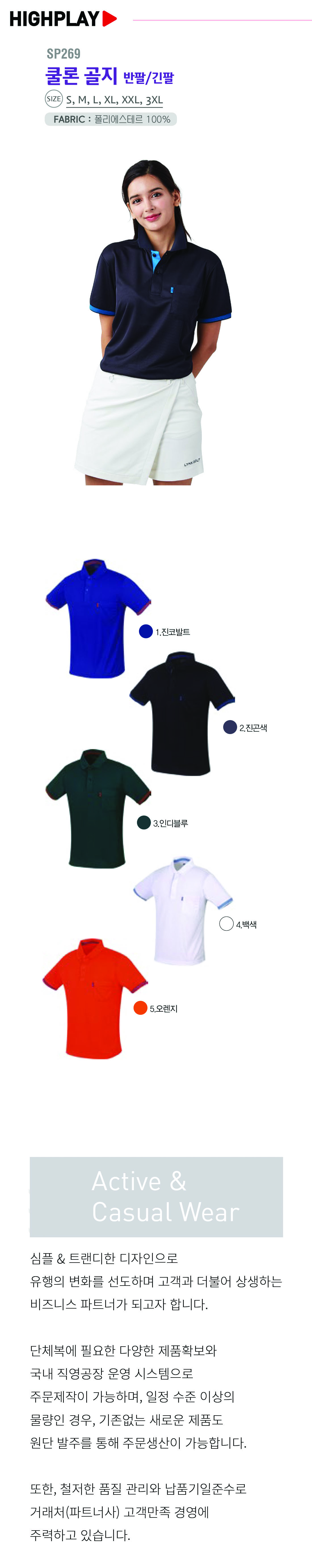하이플레이 쿨론 골지 카라티셔츠 [단체티셔츠,기능성카라티셔츠] / SP 269 / 반팔,긴팔