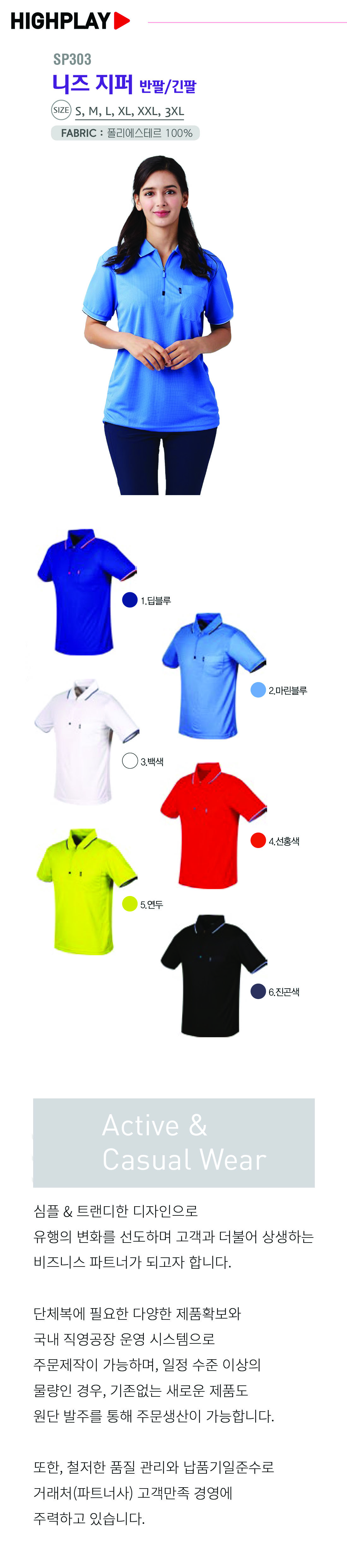 하이플레이 니즈 지퍼 카라티셔츠 [단체티셔츠,기능성카라티셔츠] / SP 303 / 반팔,긴팔