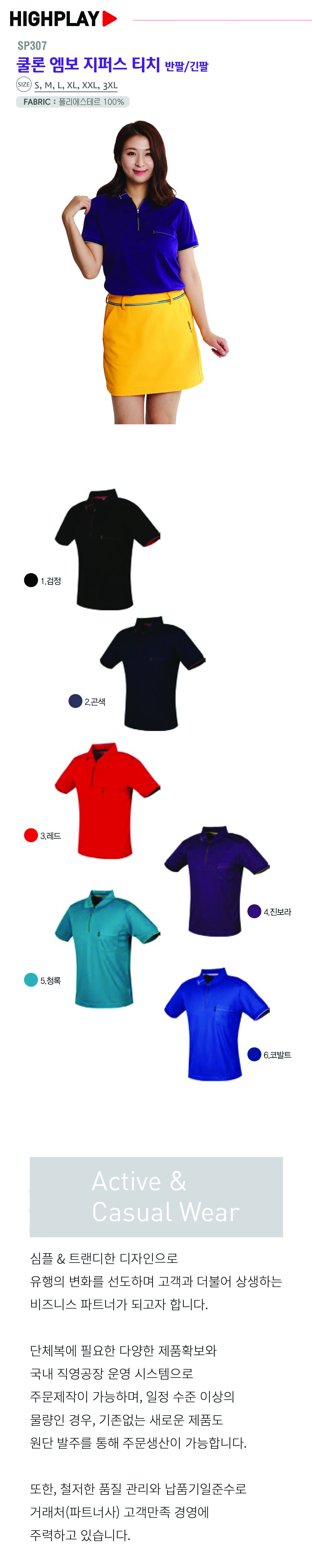 하이플레이 쿨론 엠보 지퍼스 터치 카라티셔츠 [단체티셔츠,기능성카라티셔츠] / SP 307 / 반팔,긴팔