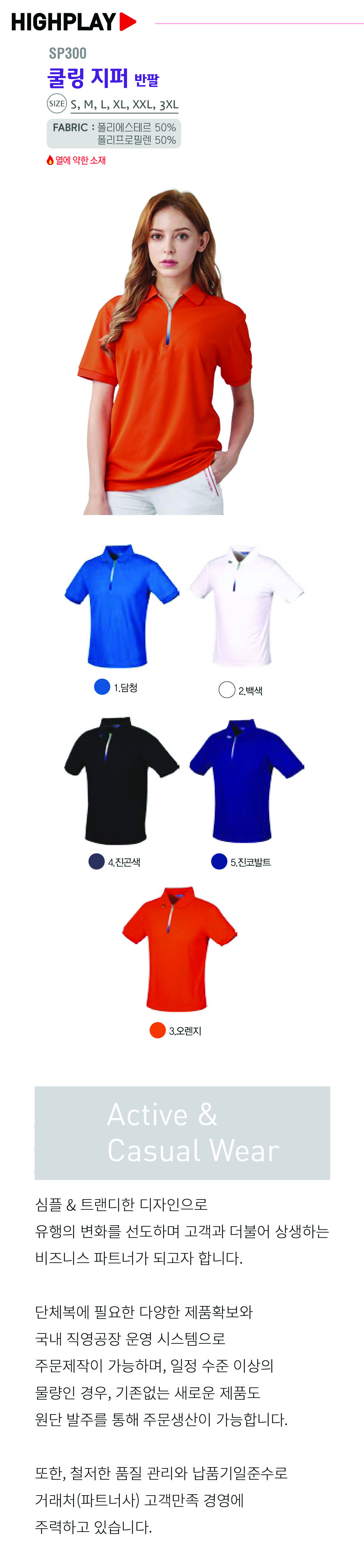 하이플레이 쿨링 지퍼 카라티셔츠 [단체티셔츠,기능성카라티셔츠] / SP 300 / 반팔