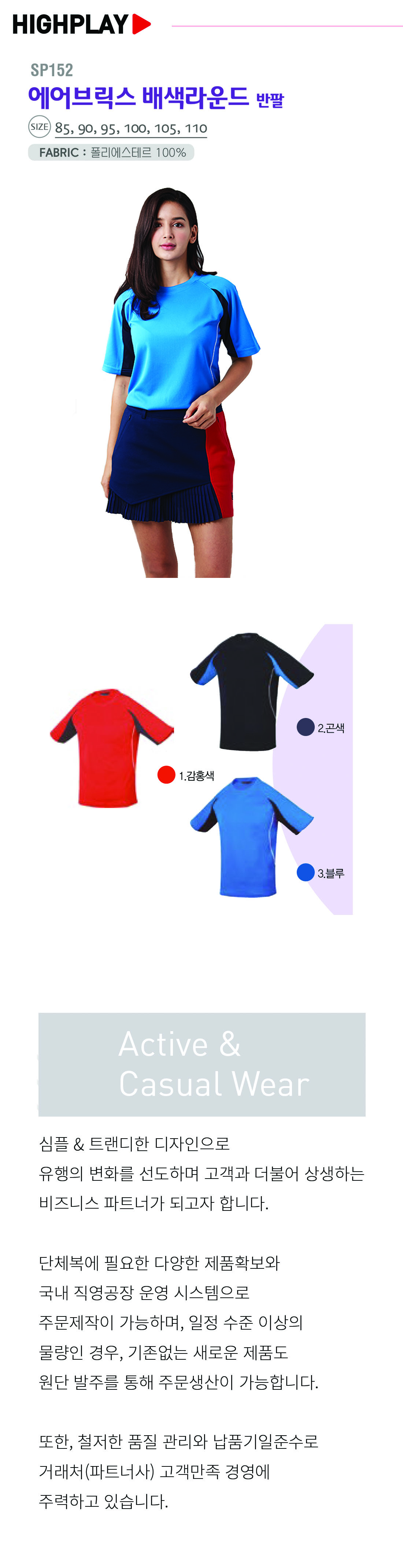 하이플레이 기능성 에어브릭스 배색 라운드티셔츠 [단체티셔츠,라운드티셔츠] / SP 152 / 반팔