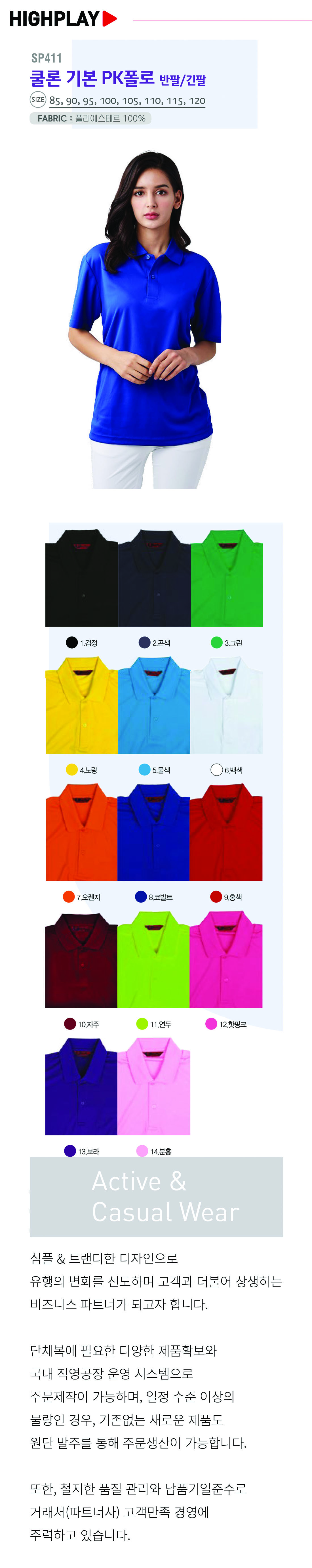 하이플레이 쿨론 기본 PK 폴로티셔츠 [단체티셔츠,카라티셔츠] / SP 411 / 반팔,긴팔