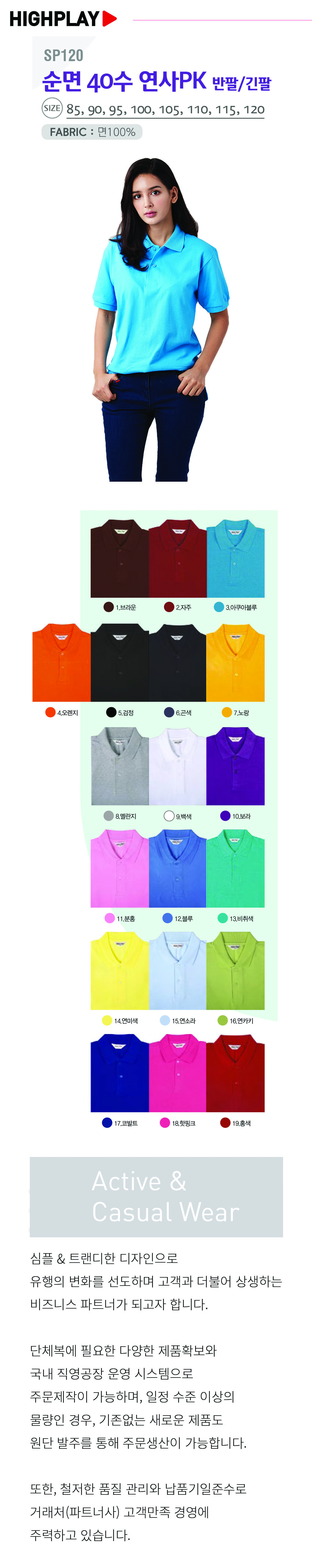 하이플레이 순면 40수 연사 PK 카라티셔츠 [단체티셔츠,카라티셔츠] / SP 120 / 반팔,긴팔