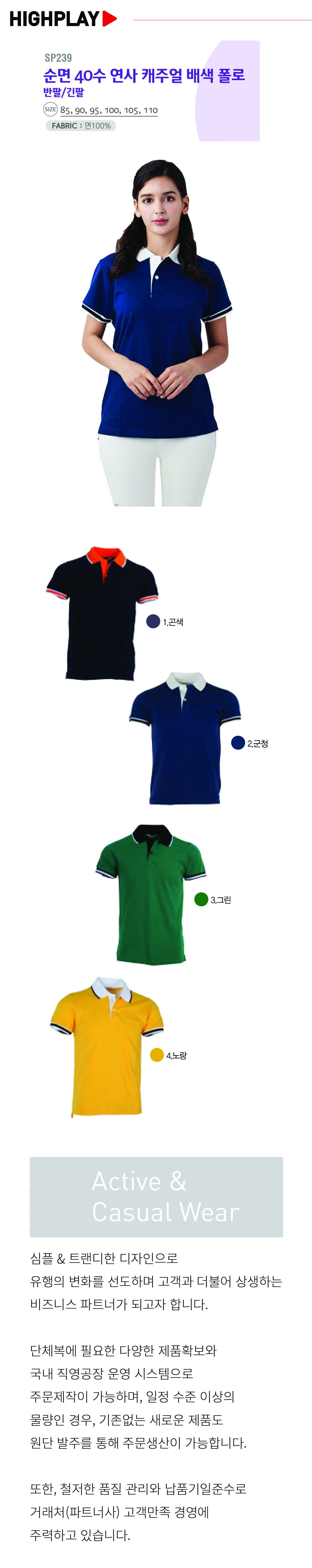 하이플레이 순면 40수 연사 캐쥬얼 배색 폴로티셔츠 [단체티셔츠,카라티셔츠] / SP 239 / 반팔,긴팔