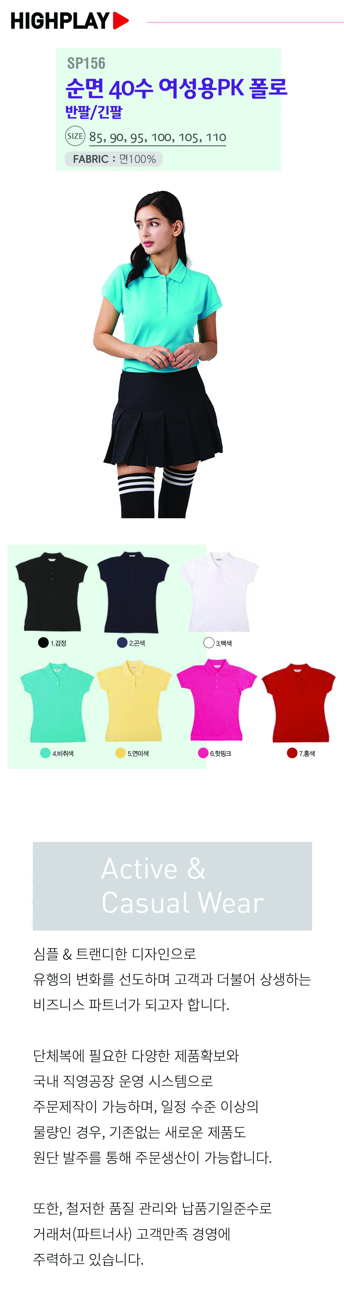 하이플레이 순면 40수 여성용 PK 폴로티셔츠 [단체티셔츠,카라티셔츠] / SP 156 / 반팔,긴팔