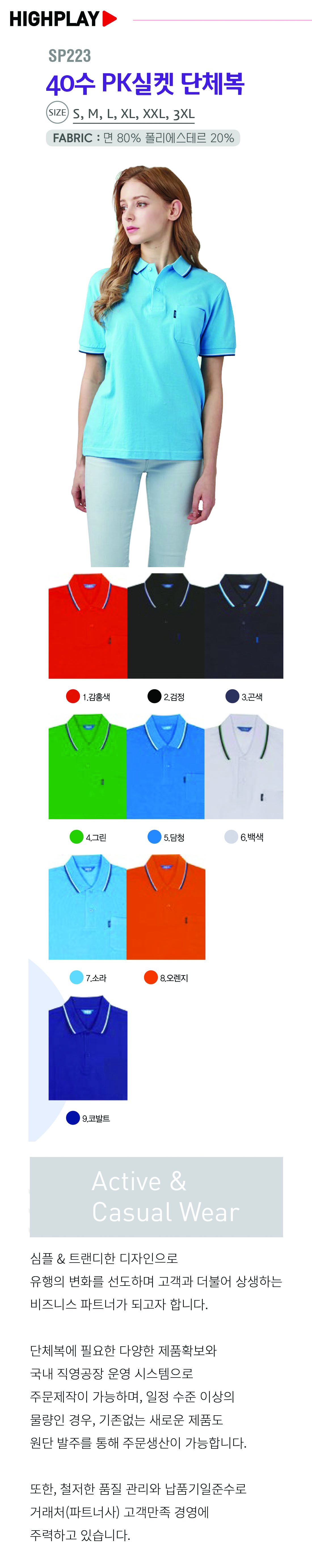 하이플레이 40수 PK실켓 카라티셔츠 [단체티셔츠,카라티셔츠] / SP 223 / 반팔