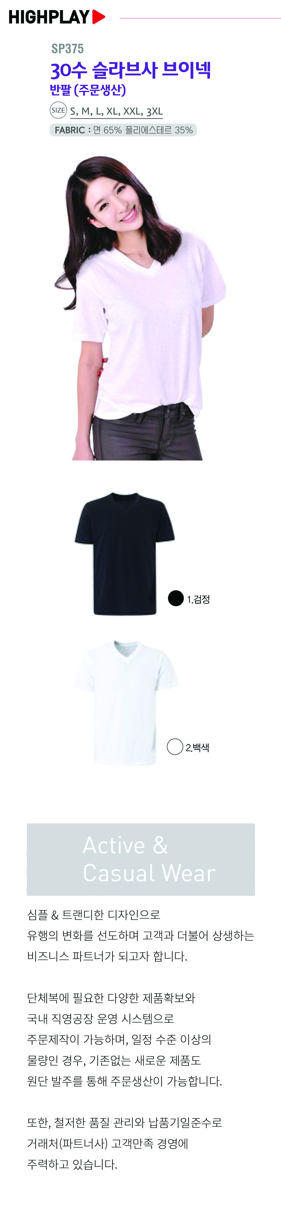 하이플레이 30수 슬라브사 브이넥티셔츠 [단체티셔츠,브이넥티셔츠] / SP 375 / 반팔