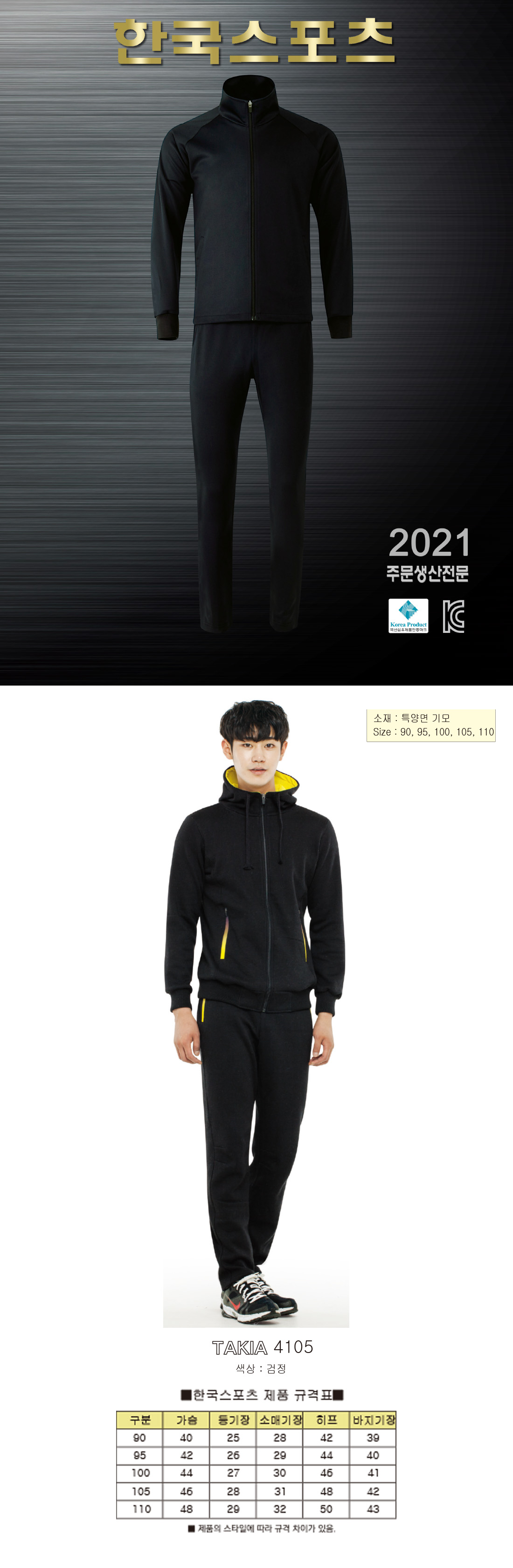 KSD 특양면 기모 후드 트레이닝복[단체트레이닝복,학교체육복,기모트레이닝복,면트레이닝복] / 4105 / 검정