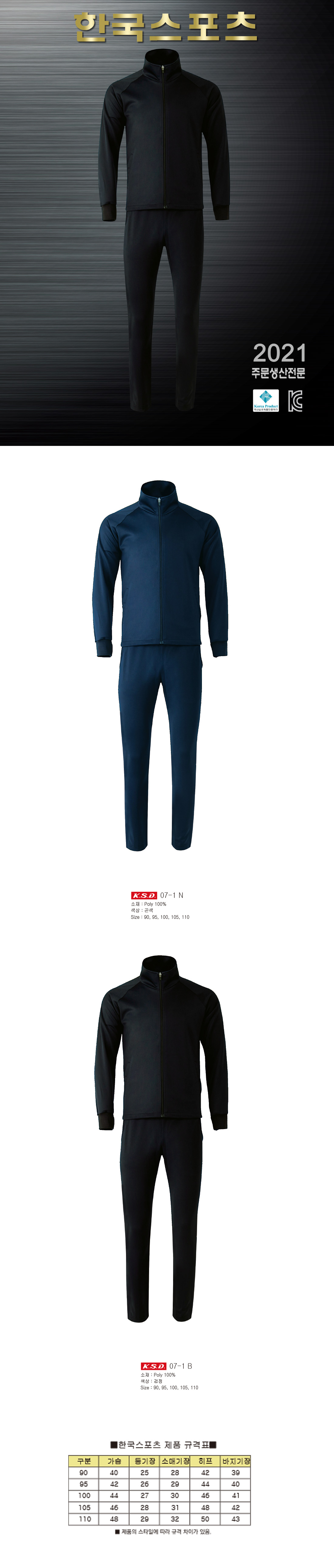 KSD 쿠션지 트레이닝 세트[단체트레이닝복,트레이닝복,쿠션지,학교체육복] / 07-1 / 곤색,검정