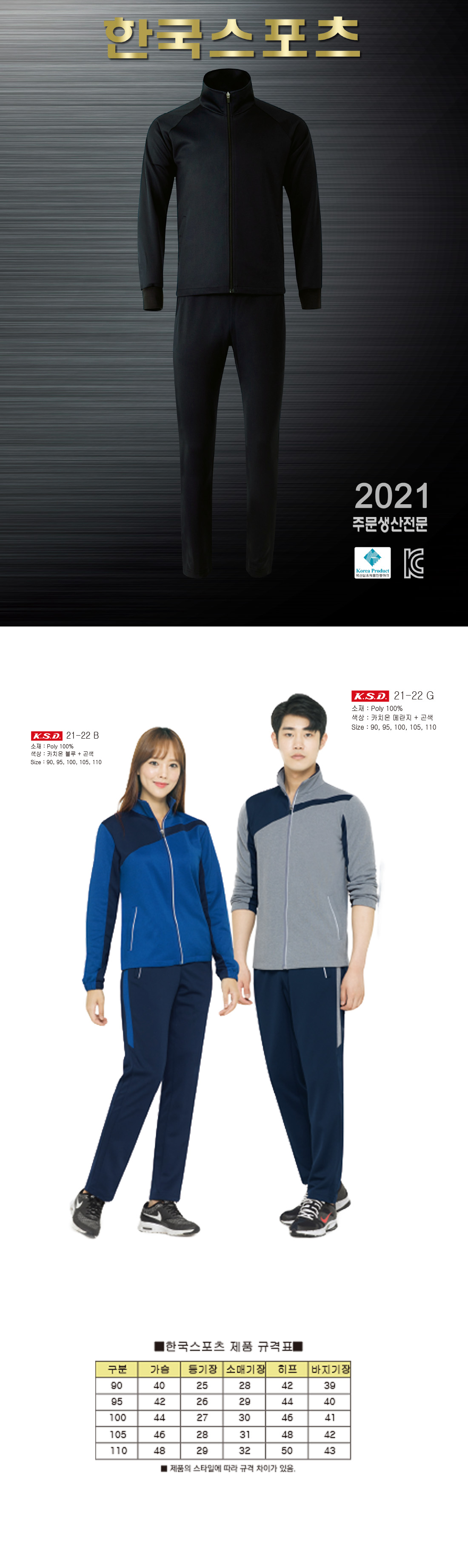 KSD 쿠션지 트레이닝 세트[단체트레이닝복,트레이닝복,쿠션지,학교체육복] / 21-22 / 블루,멜란지