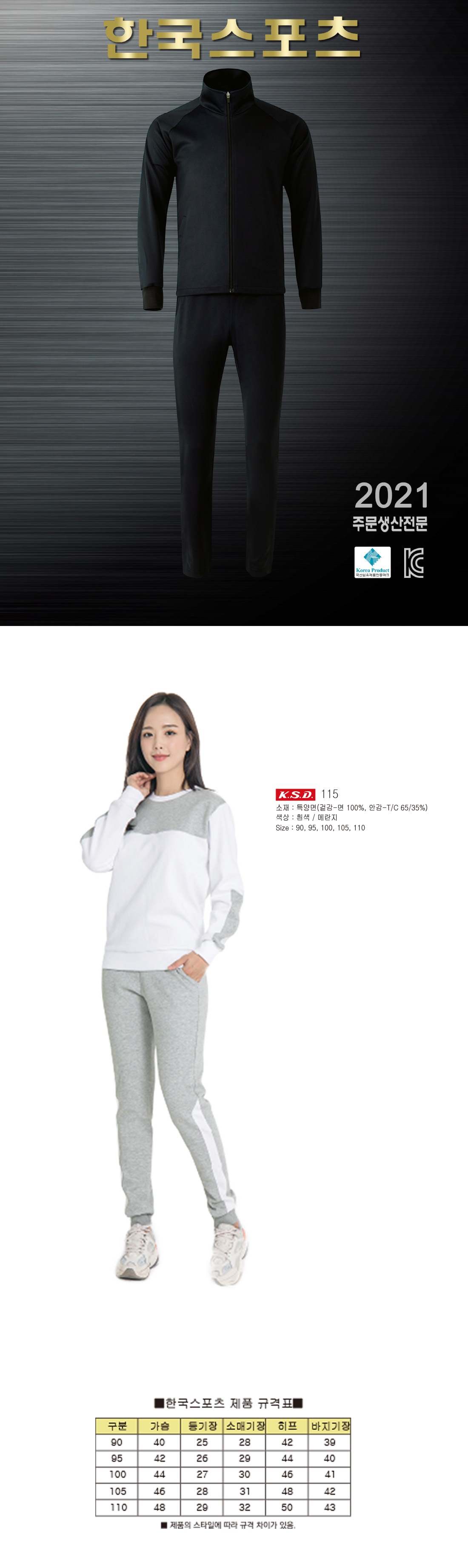 KSD 특양면 트레이닝 세트[단체트레이닝복,트레이닝복,면트레이닝복,학교체육복] / 115