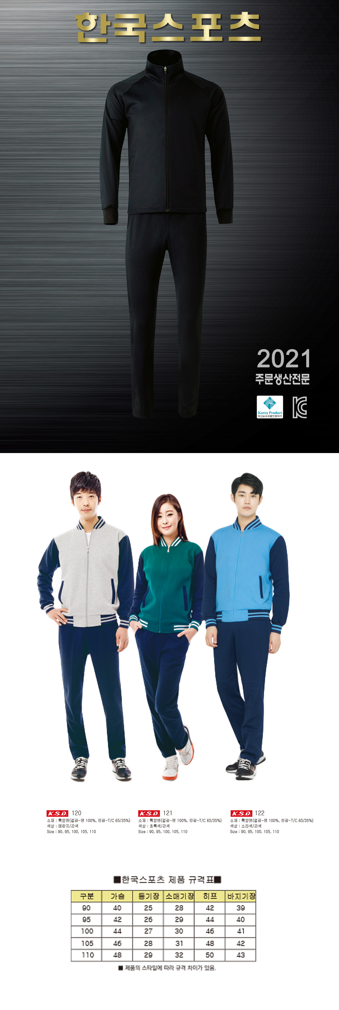 KSD 특양면 트레이닝 세트[단체트레이닝복,트레이닝복,면트레이닝복,학교체육복] / 121,121,122