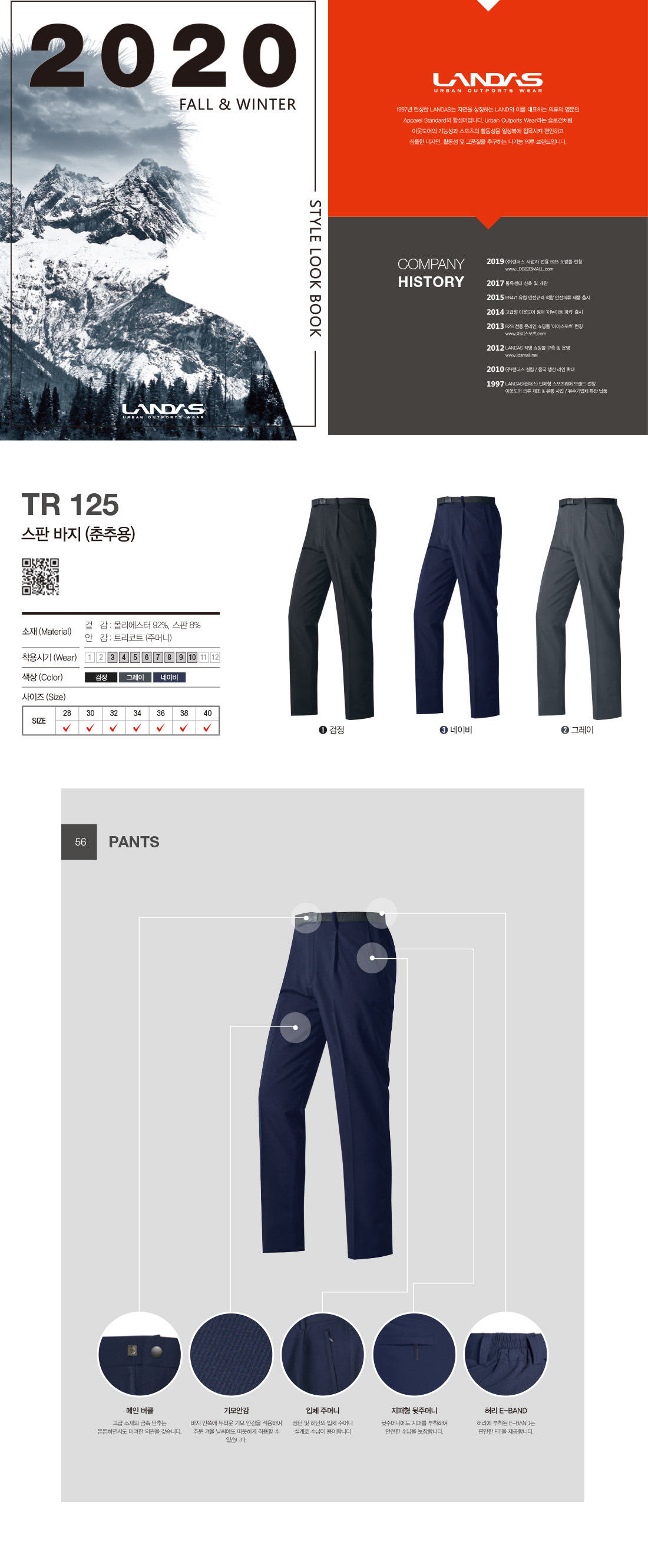 랜더스 스판 바지 / TR 125 / 검정,네이비,그레이 [단체바지,스판바지,근무바지,기지바지]