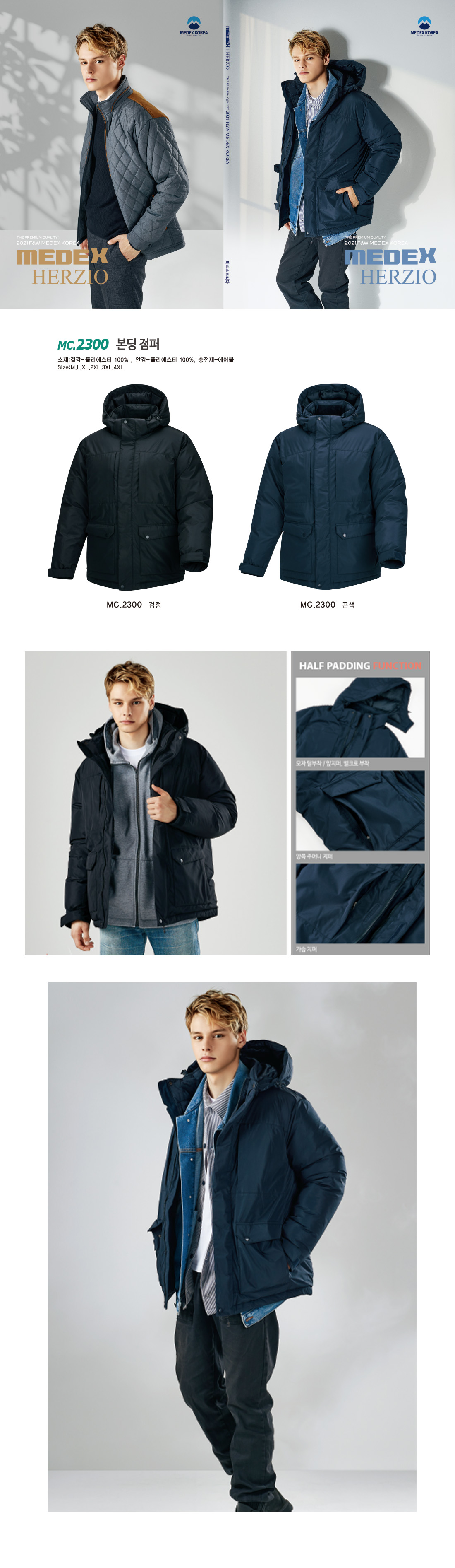 메덱스 본딩 점퍼 [단체패딩/하프패딩] / MC 2300 / 검정,곤색