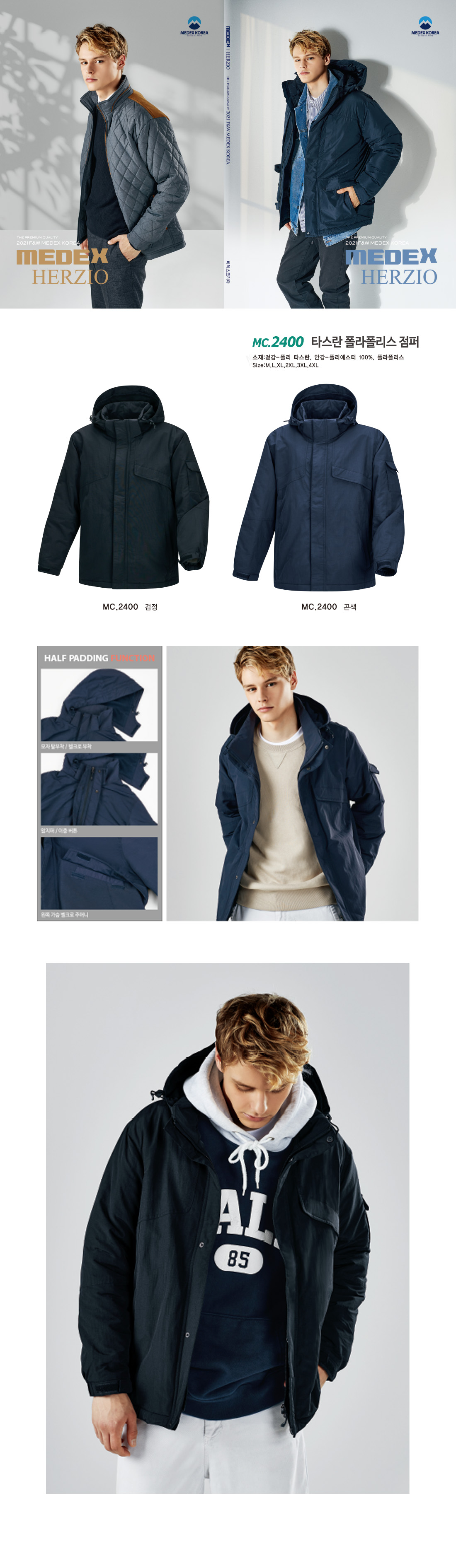 메덱스 타스란 폴라폴리스 점퍼 [단체패딩/하프패딩] / MC 2400 / 검정,곤색