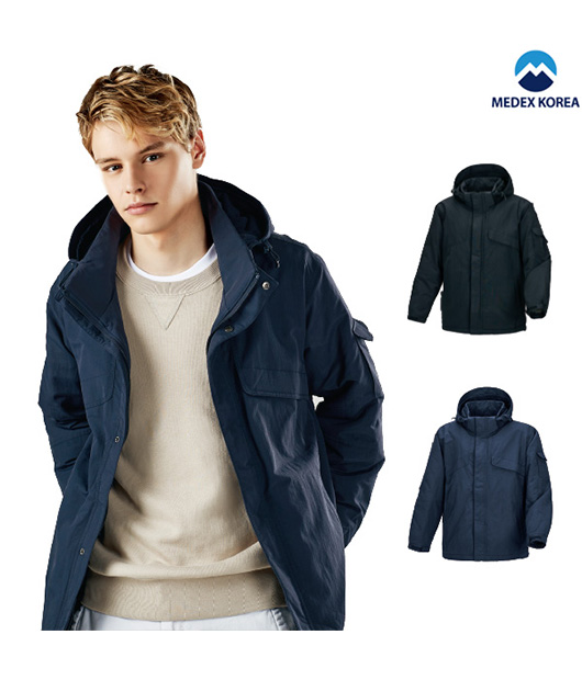 제품소개 모자 탈부착/벨크로 부착, 앞지퍼/이중 버튼, 왼쪽 가슴 벨크로 주머니