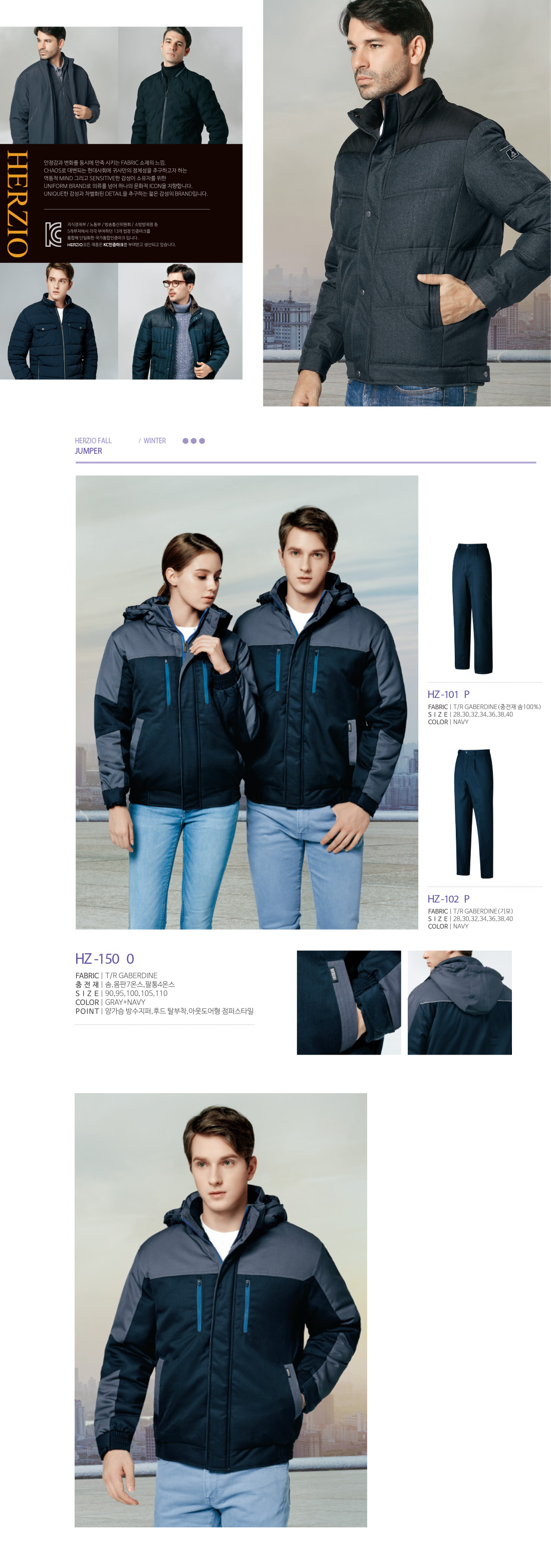 헤르지오 HZ-1500 [상,하의별도판매][단체근무복,근무복,동계근무복,사무복] / 그레이+네이비