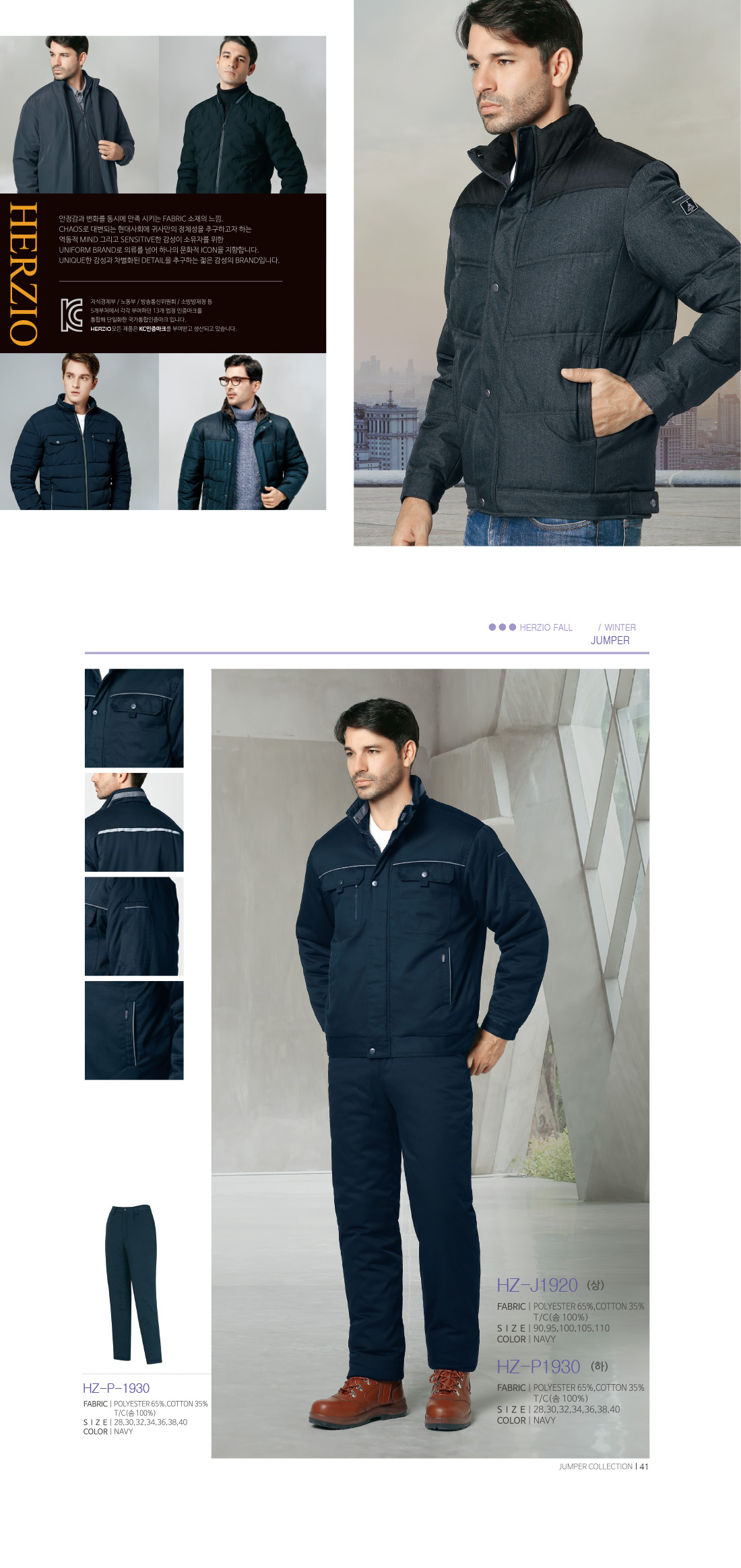 헤르지오 HZ-J1920 [상,하의별도판매][단체근무복,단체작업복,동계작업복,동계근무복] / 네이비