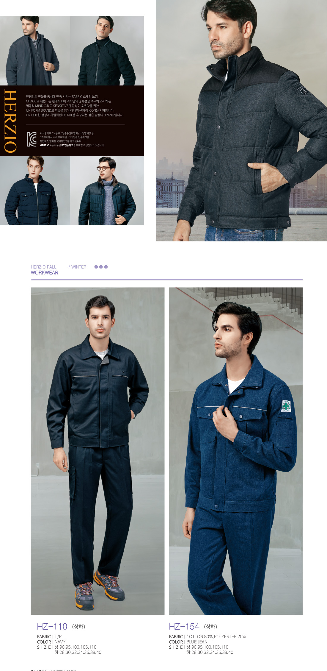 헤르지오 HZ-110,150 [세트판매][단체근무복,단체작업복,동계작업복,동계근무복] / 네이비,블루진