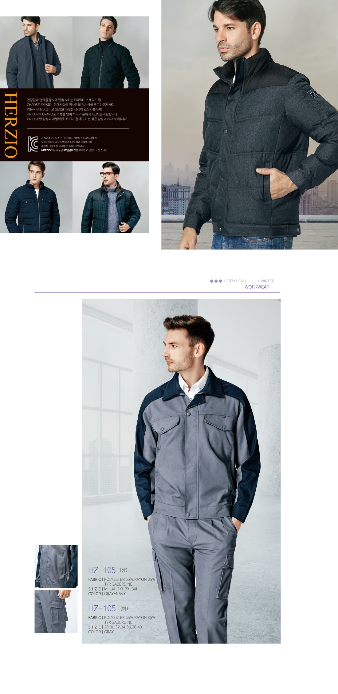 헤르지오 HZ-105 [상,하의별도판매][단체근무복,단체작업복,동계작업복,동계근무복] / 네이비+그레이