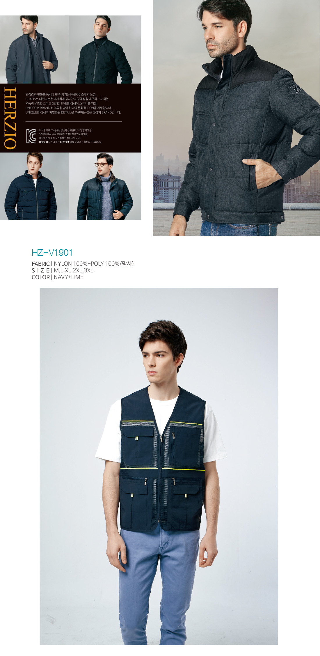 헤르지오 HZ-V1901 [단체조끼,근무조끼,작업조끼,사무조끼] / 네이비+라임
