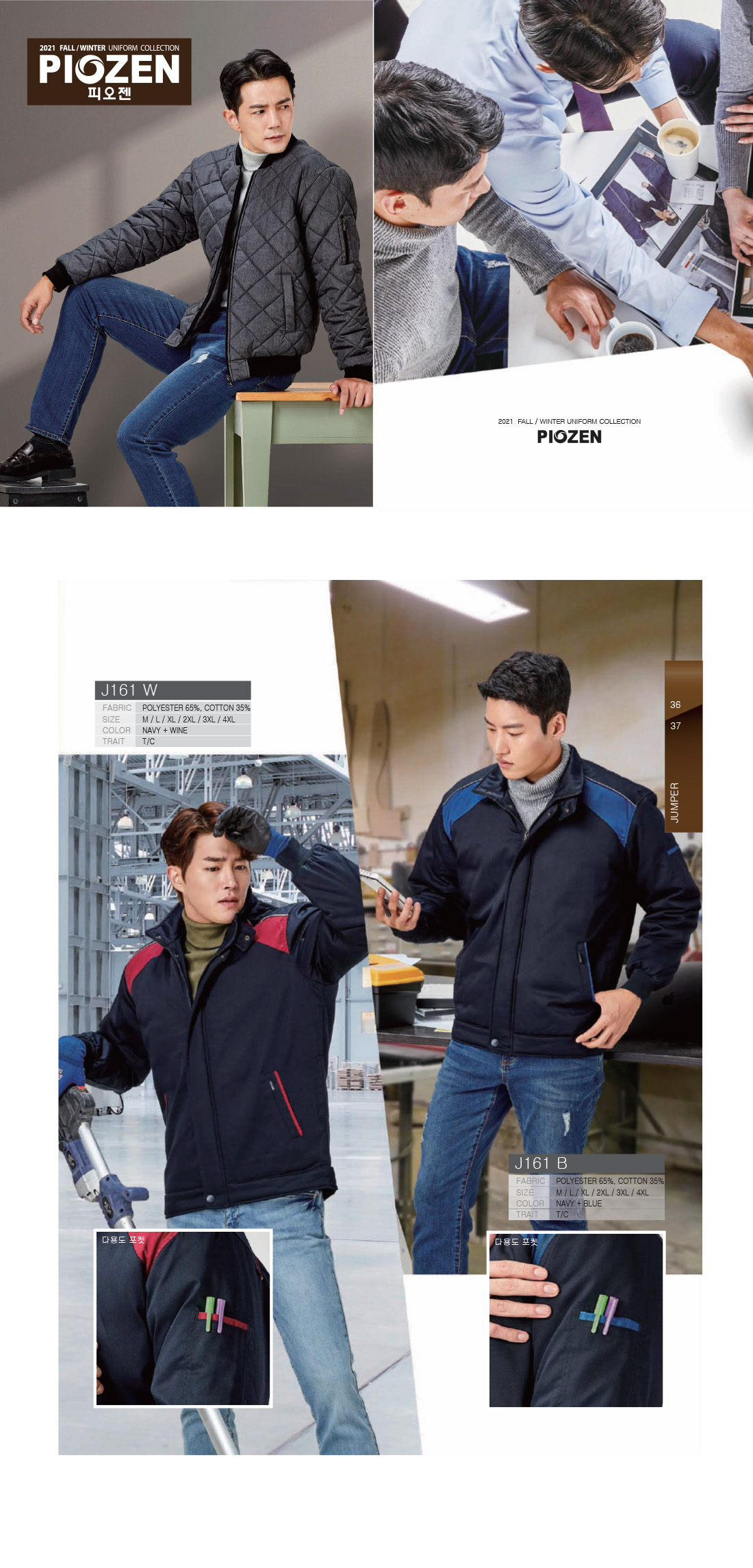 피오젠 회사 동계근무복,작업복 자켓 / J161 / 와인,블루 [단체근무복,단체작업복,회사근무복,회사단체복,동계근무복,동계작업복]