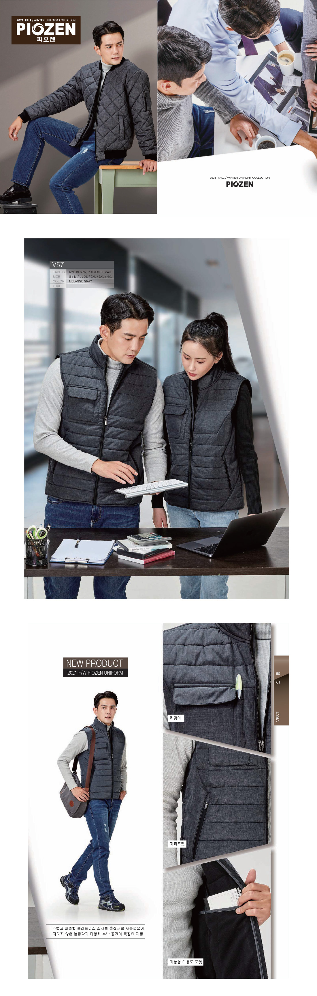 피오젠 회사 동계근무복,작업복 겨울 조끼 / V57 / 그레이 [단체근무복,단체작업복,회사근무복,회사단체복,단체조끼,회사조끼,근무조끼,작업조끼,동계근무조끼]