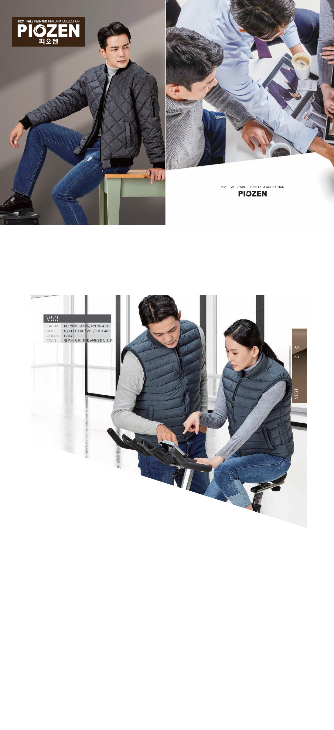 피오젠 회사 동계근무복,작업복 겨울 조끼 / V53 / 그레이 [단체근무복,단체작업복,회사근무복,회사단체복,단체조끼,회사조끼,근무조끼,작업조끼,동계근무조끼]
